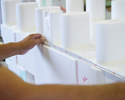 複雑な形状や大型のプレス金型をスピーディーに製作できる「フルモード鋳造法」があります。その鋳型となる発砲スチロール製の金型模型を当社では製作しています。「プレス金型が破損した」「急に試作品が必要になった」など、短納期で発泡スチロール型が必要な場合にも迅速に対応。またご希望の場合は、発泡スチロール型の製作だけではなく、完成した鋳物の手配も承ります。